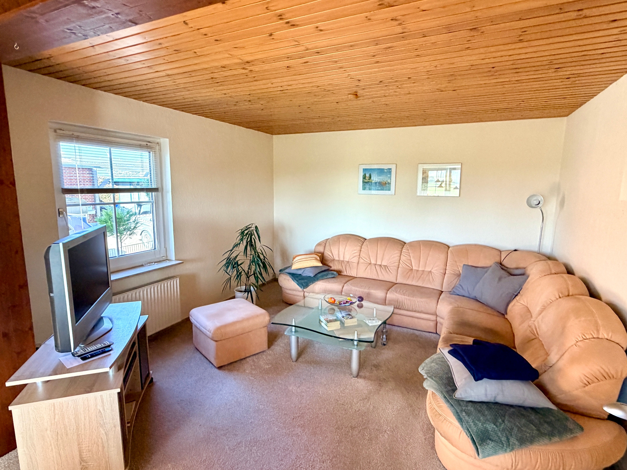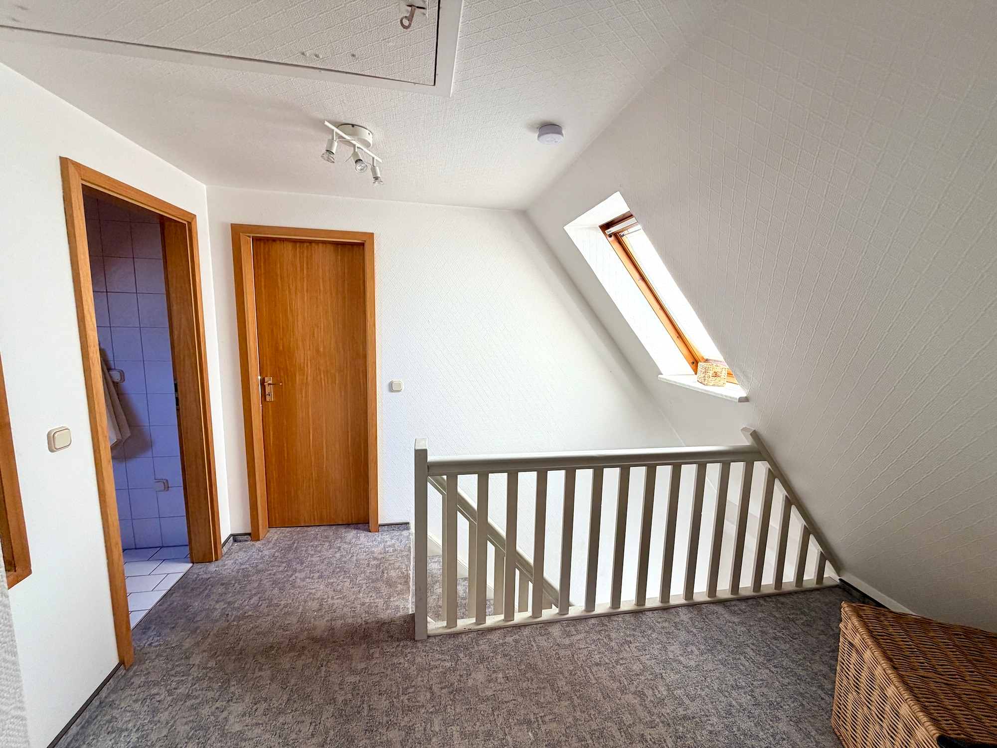 - über eine Holztreppe gelangt man ins Obergeschoss mit einem geräumigen Flur, zwei vielseitig nutzbaren hellen Zimmern (Schlaf-, Gäste- oder Kinderzimmer) und einem Duschbad