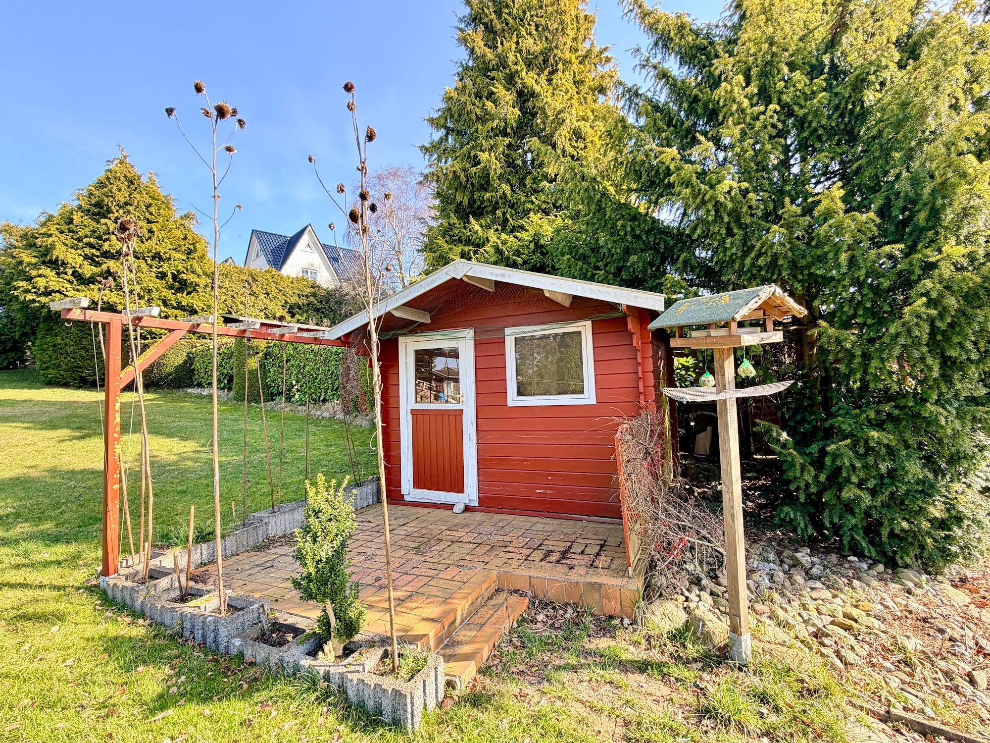 - großzügiges Grundstück mit 4 Garagen im Innenhof, Wiesenfläche und Gartenhäuschen mit kleiner Terrasse